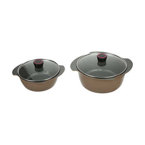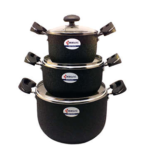اما نوع دیگر قابلمه ها جنس گرانیتی دارند. از بین محصولات نچسب، این قابلمه، با دوام ترین است. سرویس هایی با جنس گرانیتی، گرما را مدت بیشتری در خود نگه می دارد، که باعث می شود غذا دیرتر بسوزد. شستن این قابلمه ها آسان است، همچنین به دلیل نچسب بودن آن ها، هنگام پخت روغن کمتری مصرف می کنند.